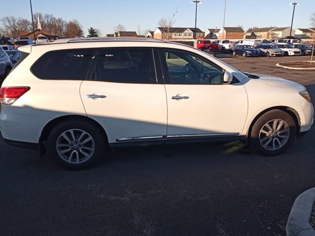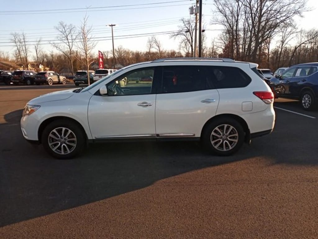 Jeff Wyler Eastgate Auto Mall is proud to offer this superb-looking 2015 Nissan Pathfinder SL in Pearl White. Well equipped with: Cargo Package (First Aid Kit and Tonneau Cover), 18 Alloy Wheels, 3rd row seats: bench, 4-Wheel Disc Brakes, 5.577 Axle Ratio, 6 Speakers, ABS brakes, Activation Disclaimer, Air Conditioning, Alloy wheels, AM/FM radio: SiriusXM, Auto-dimming Rear-View mirror, Automatic temperature control, Black Splash Guards 4-Piece, Bodyside moldings, Brake assist, Bumpers: body-color, Carpeted Floor Mat (4-Pc Set), CD player, Driver door bin, Driver vanity mirror, Dual front impact airbags, Dual front side impact airbags, Electronic Stability Control, Four wheel independent suspension, Front anti-roll bar, Front Bucket Seats, Front Center Armrest w/Storage, Front dual zone A/C, Front fog lights, Front reading lights, Fully automatic headlights, Garage door transmitter: HomeLink, Heated door mirrors, Heated Front & Rear Bucket Seats, Heated front seats, Heated rear seats, Illuminated entry, Leather Seating Surfaces, Leather Shift Knob, Leather steering wheel, Low tire pressure warning, Memory seat, Occupant sensing airbag, Outside temperature display, Overhead airbag, Overhead console, Panic alarm, Passenger door bin, Passenger vanity mirror, Power door mirrors, Power driver seat, Power Liftgate, Power passenger seat, Power steering, Power windows, Radio data system, Radio: AM/FM/RDS/MP3/1CD Audio System w/6-Speakers, Radio: Bose Audio System w/AM/FM/CD & 13 Speakers, Rear air conditioning, Rear anti-roll bar, Rear Bumper Protector, Rear Parking Sensors, Rear reading lights, Rear seat center armrest, Rear window defroster, Rear window wiper, Reclining 3rd row seat, Remote keyless entry, Roof rack: rails only, Security system, Speed control, Speed-sensing steering, Speed-Sensitive Wipers, Split folding rear seat, Spoiler, Steering wheel mounted audio controls, Tachometer, Telescoping steering wheel, Tilt steering wheel, Traction control, Trip computer, and Variably intermittent wipers. Awards: