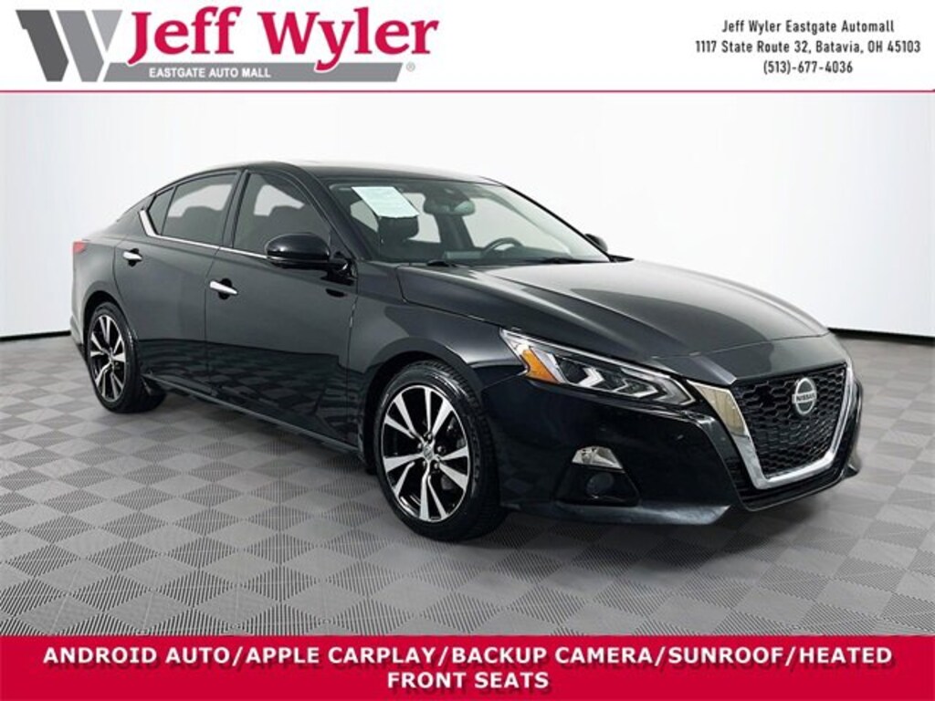 Jeff Wyler Eastgate Auto Mall is pumped up to offer this terrific-looking 2019 Nissan Altima 2.0 Platinum in Super Black Clearcoat. Well equipped with: 19 Alloy Wheels, 4-Wheel Disc Brakes, 9 Speakers, ABS brakes, Air Conditioning, Alloy wheels, AM/FM radio: SiriusXM, Auto High-beam Headlights, Auto-dimming Rear-View mirror, Automatic temperature control, Blind Spot Warning, Body-Colored Splash Guards, Brake assist, Bumpers: body-color, Chrome Bumper Protector, Compass, Delay-off headlights, Driver door bin, Driver vanity mirror, Dual front impact airbags, Dual front side impact airbags, Electronic Stability Control, Emergency communication system: NissanConnect Services, Floor Mats/Trunk Mat/Hideaway Nets, Four wheel independent suspension, Front anti-roll bar, Front Bucket Seats, Front Center Armrest w/Storage, Front dual zone A/C, Front fog lights, Front reading lights, Fully automatic headlights, Garage door transmitter: HomeLink, Heated door mirrors, Heated Front Bucket Seats, Heated front seats, Heated steering wheel, Illuminated entry, Knee airbag, Leather Shift Knob, Leather-Appointed Seat Trim, Low tire pressure warning, Memory seat, Navigation System, NissanConnect featuring Apple CarPlay and Android Auto, Occupant sensing airbag, Outside temperature display, Overhead airbag, Overhead console, Panic alarm, Passenger door bin, Passenger vanity mirror, Power door mirrors, Power driver seat, Power moonroof, Power passenger seat, Power steering, Power windows, Radio data system, Radio: AM/FM/HD w/Bose Premium Sound System, Rear anti-roll bar, Rear Parking Sensors, Rear reading lights, Rear seat center armrest, Rear side impact airbag, Rear window defroster, Remote keyless entry, Security system, Speed control, Speed-sensing steering, Split folding rear seat, Spoiler, Steering wheel mounted audio controls, Tachometer, Telescoping steering wheel, Tilt steering wheel, Traction control, Trip computer, Trunk Organizer Tray, Turn signal indicator mirrors, and Variably intermittent wipers. CARFAX One-Owner. Clean CARFAX. Awards: