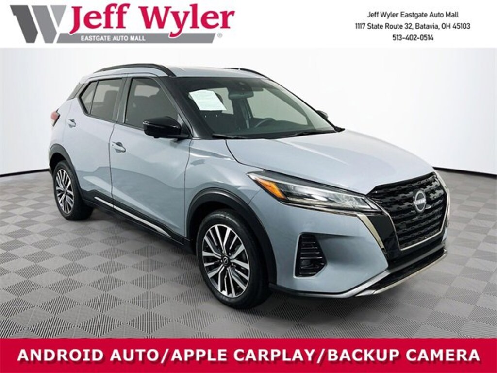Jeff Wyler Eastgate Auto Mall is excited to offer this superb 2023 Nissan Kicks SR in Boulder Gray Pearl. Well equipped with: 17 Alloy Wheels, 3.93 Axle Ratio, 4-Wheel Disc Brakes, 6 Speakers, ABS brakes, Air Conditioning, Alloy wheels, AM/FM radio: SiriusXM, Apple CarPlay/Android Auto, Auto High-beam Headlights, Automatic temperature control, Blind Spot Warning, Brake assist, Bumpers: body-color, Carpeted Floor Mats w/Cargo Mat, Cloth Seat Trim, Delay-off headlights, Driver door bin, Driver vanity mirror, Dual front impact airbags, Dual front side impact airbags, Electronic Stability Control, Exterior Parking Camera Rear, Front anti-roll bar, Front Bucket Seats, Front Center Armrest, Front fog lights, Front reading lights, Front wheel independent suspension, Fully automatic headlights, Heated door mirrors, Illuminated entry, Knee airbag, Low tire pressure warning, Occupant sensing airbag, Outside temperature display, Overhead airbag, Panic alarm, Passenger door bin, Passenger vanity mirror, Power door mirrors, Power steering, Power windows, Radio data system, Radio: AM/FM Audio System, Rear Parking Sensors, Rear reading lights, Rear Roof Spoiler Credit, Rear side impact airbag, Rear window defroster, Rear window wiper, Remote keyless entry, Speed control, Split folding rear seat, Sport steering wheel, Steering wheel mounted audio controls, Tachometer, Telescoping steering wheel, Tilt steering wheel, Traction control, Trip computer, Turn signal indicator mirrors, and Variably intermittent wipers. CARFAX One-Owner. Clean CARFAX. Ask about available certifications. Used vehicles 10 years of age or newer with less than 100,000 miles are eligible for the Wyler Assurance Program, but eligible vehicles must pass our reconditioning process and multi-point inspection. Provided the vehicle passes inspection, vehicles will be eligible for the 6 month/6,000 mile limited warranty. The 6 month/6,000 mile limited warranty is NOT available on AS-IS vehicles, wholesale vehicles, lease buyback/pass-thru vehicles or un-inspected vehicles. Note that this program can also apply to vehicles where the remaining factory coverage is less than 6 months or 6,000 miles. Please check the Federal Trade Commission (FTC) Buyers guide on the vehicle for full details as to whether or not warranty coverage may apply. Contact Dealer for additional details. The Wyler Assurance 6 month/6,000 Mile limited warranty ends 6 months from the date of the Retail Purchase Agreement (BUYERS ORDER) or when the vehicle's odometer registers 6,000 additional miles to the mileage listed on the BUYERS ORDER, whichever comes first. Your Deductible - The warranty holder on your contract pays the first $100 of each covered repair.