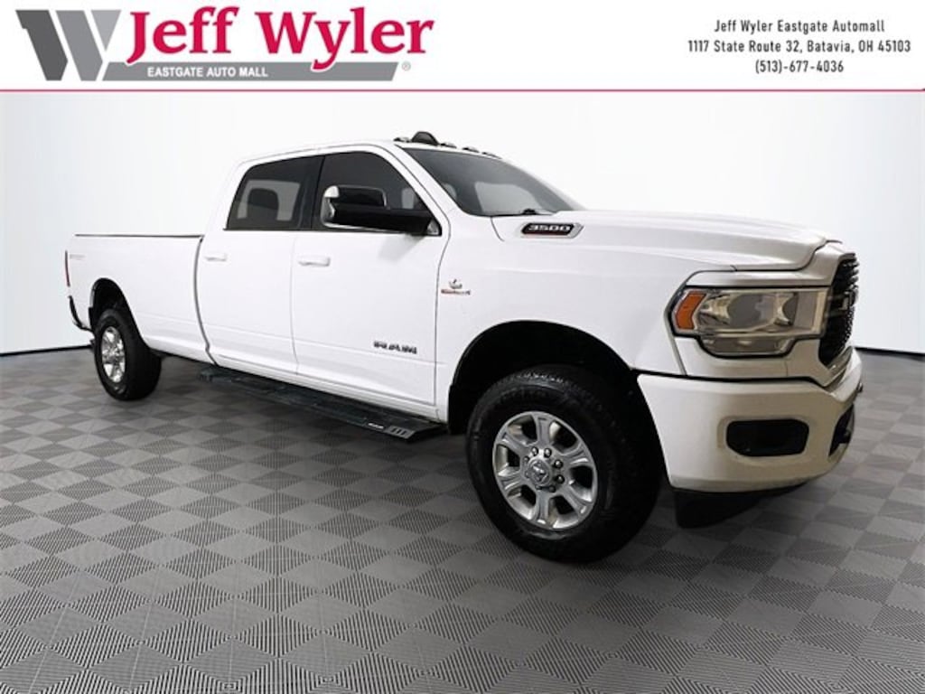 Jeff Wyler Eastgate Auto Mall is proud to offer this fantastic-looking 2022 Ram 3500 Big Horn in Bright White Clearcoat. Well equipped with: Cold Weather Group (Engine Block Heater and MOPAR Winter Front Grille Cover), Heavy Duty Snow Plow Prep Group (220 Amp Alternator), Level An Equipment Group (2 Way Rear Headrest Seat, 2nd Row In Floor Storage Bins, 4 Way Front Headrests, 40/20/40 Split Bench Seat, Auto-Dimming Rear-View Mirror, Center Hub, Center Stack Storage Drawer, Dual Glove Boxes, Foam Bottle Insert (Door Trim Panel), Folding Flat Load Floor Storage, Footwell Courtesy Lamp, Front Armrest w/Cupholders, Front Center Seat Cushion Storage, Front Fog Lamps, Front Seat Back Map Pockets, Glove Box Lamp, Leather Wrapped Steering Wheel, Locking Lower Glove Box, Manual Adjust 4-Way Front Passenger Seat, Power 2-Way Driver Lumbar Adjust, Power Adjust 8-Way Driver Seat, Power Adjustable Pedals, Premium Cloth 40/20/40 Bench Seat, Rear 60/40 Folding Seat, Rear Dome w/On/Off Switch Lamp, Steering Wheel Mounted Audio Controls, Storage Tray, Sun Visors w/Illuminated Vanity Mirrors, Universal Garage Door Opener, and Wheels: 18 x 8.0 Polished Aluminum), Quick Order Package 21Z Big Horn, Sport Appearance Package (Black Interior Accents, Body Color Door Handles, Body Color Grille Surround, Painted Front Bumper, Painted Rear Bumper, and Sport Decal), 12 Touchscreen Display, 3.73 Axle Ratio, 4-Wheel Disc Brakes, 4G LTE Wi-Fi Hot Spot, 6 Speakers, 8.4 Touchscreen Display, 9 Alpine Speakers w/Subwoofer, ABS brakes, Active Noise Control System, Air Conditioning, Air Conditioning ATC w/Dual Zone Control, Alexa Built-In, All R1 High Radios, All Radio Equipped Vehicles, AM/FM radio: SiriusXM, Apple CarPlay, Apple CarPlay/Android Auto, Bluetooth Handsfree Phone & Audio, Brake assist, Bumpers: chrome, Clearance Lamps, Cloth 40/20/40 Bench Seat, Cluster 7.0 TFT Color Display, Compass, Connected Travel & Traffic Services, Connectivity - US/Canada, Delay-off headlights, Disassociated Touchscreen Display, Driver door bin, Dual Alternators Rated At 440 Amps, Dual front impact airbags, Dual front side impact airbags, Electronic Stability Control, Electronically Controlled Throttle, For Details Visit DriveUconnect.com, For More Info, Call 800-643-2112, Front anti-roll bar, Front Center Armrest w/Storage, Front License Plate Bracket, Front reading lights, Fully automatic headlights, Global Telematics Box Module (TBM), Google Android Auto, GPS Antenna Input, GPS Navigation, HD Radio, Heated door mirrors, Illuminated entry, Integrated Voice Command w/Bluetooth, LED Bed Lighting, Low tire pressure warning, Manual Adjust 4-Way Driver Seat, MOPAR Spray In Bedliner, Occupant sensing airbag, Off-Road Information Pages, Outside temperature display, Overhead airbag, Overhead console, Panic alarm, ParkSense Front/Rear Park Assist System, ParkView Rear Back-Up Camera, Passenger door bin, Passenger vanity mirror, Power door mirrors, Power steering, Power windows, Radio data system, Radio: Uconnect 5 Nav w/12.0 Display, Radio: Uconnect 5 w/8.4 Display, Rear Folding Seat, Rear seat center armrest, Rear step bumper, Remote keyless entry, Remote Start System, Selectable Tire Fill Alert, SiriusXM Radio Service, SiriusXM Satellite Radio, SiriusXM w/360L, Speed control, Tachometer, Tilt steering wheel, Tip Start, Traction control, Trip computer, Turn signal indicator mirrors, Variably intermittent wipers, Voltmeter, and Wheels: 18 x 8.0 Steel Chrome ClaD. CARFAX One-Owner. Clean CARFAX. Ask about available certifications. Used vehicles 10 years of age or newer with less than 100,000 miles are eligible for the Wyler Assurance Program, but eligible vehicles must pass our reconditioning process and multi-point inspection. Provided the vehicle passes inspection, vehicles will be eligible for the 6 month/6,000 mile limited warranty. The 6 month/6,000 mile limited warranty is NOT available on AS-IS vehicles, wholesale vehicles, le