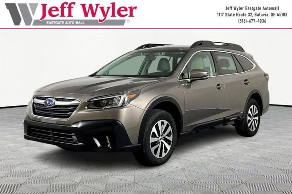 Jeff Wyler Eastgate Auto Mall is very proud to offer this good-looking 2021 Subaru Outback Premium in Brilliant Bronze Metallic. Well equipped with: BSD w/RCTA & Keyless Access & Push Button Start (Blind Spot Detection (BSD), Hands-Free Power Rear Gate, Keyless Access w/Push Button Start, and Rear Cross Traffic Alert (RCTA)), Popular Package #1 (All-Weather Floor Liners, Auto-Dimming Exterior Mirror w/Approach Light, Auto-Dimming Mirror w/Compass & HomeLink, Dome Light LED Upgrade, and Rear Bumper Cover), 3.90 Axle Ratio, 4-Wheel Disc Brakes, 6 Speakers, ABS brakes, Air Conditioning, Alloy wheels, AM/FM radio: SiriusXM, Auto High-beam Headlights, Automatic temperature control, Brake assist, Bumpers: body-color, Cloth Upholstery, Driver door bin, Driver vanity mirror, Dual front impact airbags, Dual front side impact airbags, Electronic Stability Control, Emergency communication system: STARLINK Safety and Security (Subscription Required), Exterior Parking Camera Rear, Four wheel independent suspension, Front anti-roll bar, Front Bucket Seats, Front Center Armrest w/Storage, Front dual zone A/C, Front fog lights, Front reading lights, Fully automatic headlights, Heated door mirrors, Heated Front Bucket Seats, Heated front seats, Illuminated entry, Knee airbag, Leather steering wheel, Low tire pressure warning, Occupant sensing airbag, Outside temperature display, Overhead airbag, Overhead console, Panic alarm, Passenger door bin, Passenger vanity mirror, Power door mirrors, Power driver seat, Power steering, Power windows, Radio: Subaru STARLINK 11.6 Multimedia Plus Sys, Rear anti-roll bar, Rear seat center armrest, Rear window defroster, Rear window wiper, Remote keyless entry, Roof rack, Security system, Speed control, Speed-sensing steering, Split folding rear seat, Spoiler, STARLINK/Apple CarPlay/Android Auto, Steering wheel mounted audio controls, Steering Wheel Paddle Shift Control Switches, Tachometer, Telescoping steering wheel, Tilt steering wheel, Traction control, Trip computer, Turn signal indicator mirrors, Variably intermittent wipers, and Wheels: 17 x 7J Black Aluminum Alloy. Clean CARFAX. Ask about available certifications. Used vehicles 10 years of age or newer with less than 100,000 miles are eligible for the Wyler Assurance Program, but eligible vehicles must pass our reconditioning process and multi-point inspection. Provided the vehicle passes inspection, vehicles will be eligible for the 6 month/6,000 mile limited warranty. The 6 month/6,000 mile limited warranty is NOT available on AS-IS vehicles, wholesale vehicles, lease buyback/pass-thru vehicles or un-inspected vehicles. Note that this program can also apply to vehicles where the remaining factory coverage is less than 6 months or 6,000 miles. Please check the Federal Trade Commission (FTC) Buyers guide on the vehicle for full details as to whether or not warranty coverage may apply. Contact Dealer for additional details. The Wyler Assurance 6 month/6,000 Mile limited warranty ends 6 months from the date of the Retail Purchase Agreement (BUYERS ORDER) or when the vehicle's odometer registers 6,000 additional miles to the mileage listed on the BUYERS ORDER, whichever comes first. Your Deductible - The warranty holder on your contract pays the first $100 of each covered repair.