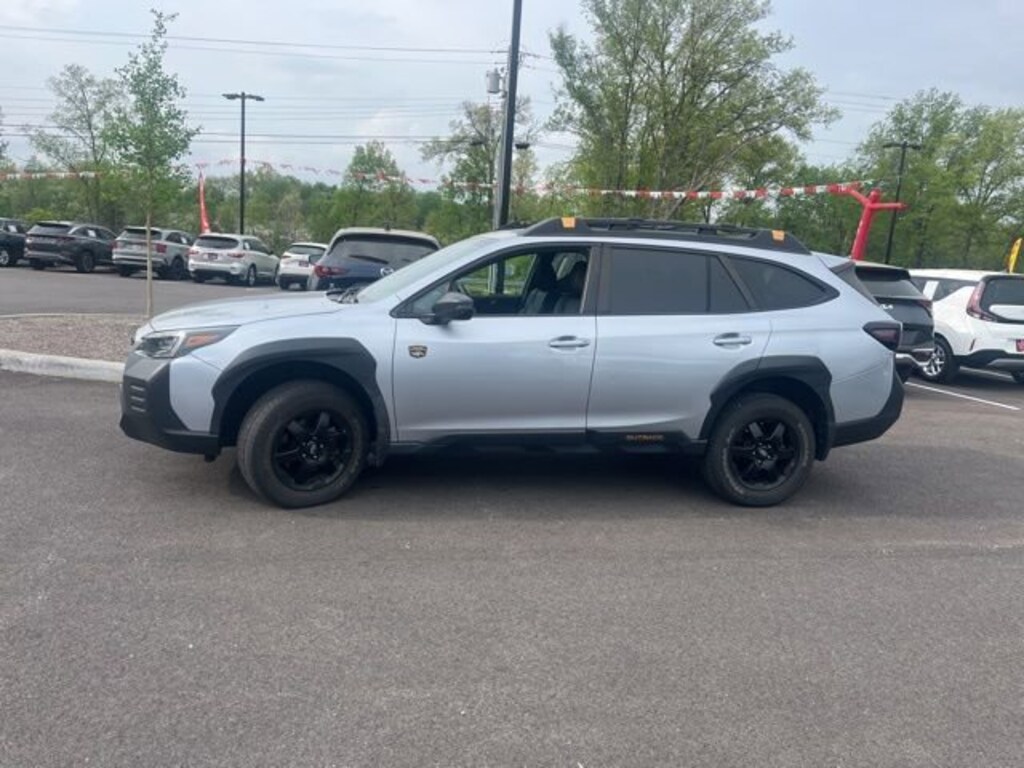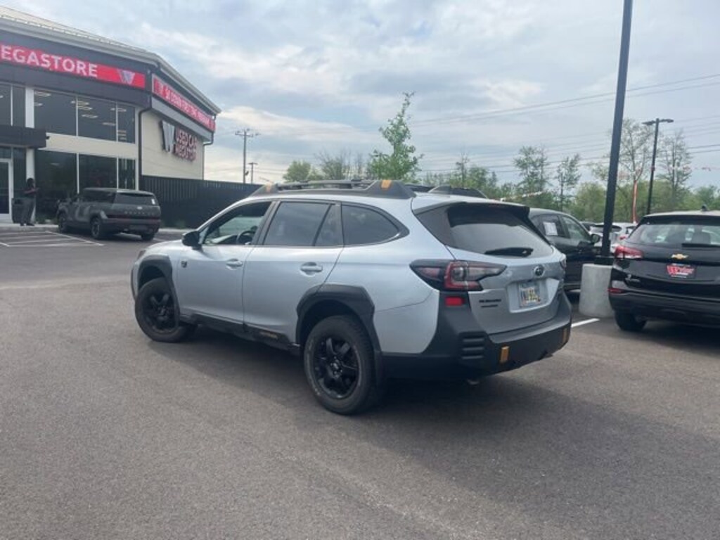 Jeff Wyler Eastgate Auto Mall is delighted to offer this superb-looking 2022 Subaru Outback Wilderness in Ice Silver Metallic. Well equipped with: Power Moonroof & Navigation & RAB (Power Moonroof, Radio: Subaru STARLINK 11.6 Multimedia Nav System, and Reverse Automatic Braking (RAB) System), Wilderness Package (Auto-Dimming Exterior Mirror w/Approach Light, Cargo Sidewall Protector, Dome Light LED Upgrade, Rear Seat Back Protector, Splash Guards, and Wireless Charger), 4-Wheel Disc Brakes, 4.111 Axle Ratio, 6 Speakers, ABS brakes, Air Conditioning, Alloy wheels, AM/FM radio: SiriusXM, Auto High-beam Headlights, Auto-dimming Rear-View mirror, Automatic temperature control, Brake assist, Compass, Driver door bin, Driver vanity mirror, Dual front impact airbags, Dual front side impact airbags, Electronic Stability Control, Emergency communication system: STARLINK Safety and Security (Subscription Required), Exterior Parking Camera Rear, Four wheel independent suspension, Front anti-roll bar, Front Bucket Seats, Front Center Armrest w/Storage, Front dual zone A/C, Front fog lights, Front reading lights, Fully automatic headlights, Garage door transmitter: HomeLink, Heated door mirrors, Heated Front Bucket Seats, Heated front seats, Heated rear seats, Illuminated entry, Knee airbag, Leather Shift Knob, Leather steering wheel, Low tire pressure warning, Occupant sensing airbag, Outside temperature display, Overhead airbag, Overhead console, Panic alarm, Passenger door bin, Passenger vanity mirror, Power door mirrors, Power driver seat, Power Liftgate, Power passenger seat, Power steering, Power windows, Radio: Subaru STARLINK 11.6 Multimedia Plus Sys, Rear anti-roll bar, Rear seat center armrest, Rear window defroster, Rear window wiper, Remote keyless entry, Roof rack, Security system, Speed control, Speed-sensing steering, Split folding rear seat, Spoiler, STARLINK/Apple CarPlay/Android Auto, StarTex-Trimmed Upholstery, Steering wheel mounted audio controls, Steering Wheel Paddle Shift Control Switches, Tachometer, Telescoping steering wheel, Tilt steering wheel, Traction control, Trip computer, Turn signal indicator mirrors, Variably intermittent wipers, and Wheels: 17 x 7J Black Aluminum Alloy. Ask about available certifications. Used vehicles 10 years of age or newer with less than 100,000 miles are eligible for the Wyler Assurance Program, but eligible vehicles must pass our reconditioning process and multi-point inspection. Provided the vehicle passes inspection, vehicles will be eligible for the 6 month/6,000 mile limited warranty. The 6 month/6,000 mile limited warranty is NOT available on AS-IS vehicles, wholesale vehicles, lease buyback/pass-thru vehicles or un-inspected vehicles. Note that this program can also apply to vehicles where the remaining factory coverage is less than 6 months or 6,000 miles. Please check the Federal Trade Commission (FTC) Buyers guide on the vehicle for full details as to whether or not warranty coverage may apply. Contact Dealer for additional details. The Wyler Assurance 6 month/6,000 Mile limited warranty ends 6 months from the date of the Retail Purchase Agreement (BUYERS ORDER) or when the vehicle's odometer registers 6,000 additional miles to the mileage listed on the BUYERS ORDER, whichever comes first. Your Deductible - The warranty holder on your contract pays the first $100 of each covered repair.