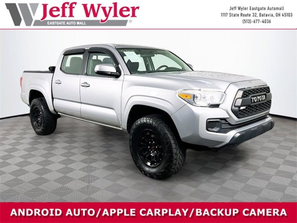 Jeff Wyler Eastgate Auto Mall is pumped up to offer this outstanding 2016 Toyota Tacoma SR in Silver. Well equipped with: 16 x 7J+30 Style Steel Disc Wheels, 6 Speakers, ABS brakes, Air Conditioning, Anti-whiplash front head restraints, Axle Ratio: 4.30, Brake assist, Bumpers: body-color, CD player, Cruise Control, Driver door bin, Dual front impact airbags, Dual front side impact airbags, Electronic Stability Control, Exterior Parking Camera Rear, Front anti-roll bar, Front Bucket Seats, Front Center Armrest, Front reading lights, Front wheel independent suspension, Illuminated entry, Knee airbag, Low tire pressure warning, Occupant sensing airbag, Outside temperature display, Overhead airbag, Overhead console, Passenger door bin, Power door mirrors, Power steering, Power windows, Rear step bumper, Speed-sensing steering, Split folding rear seat, Steering wheel mounted audio controls, Tachometer, Telescoping steering wheel, Tilt steering wheel, and Traction control. Awards: