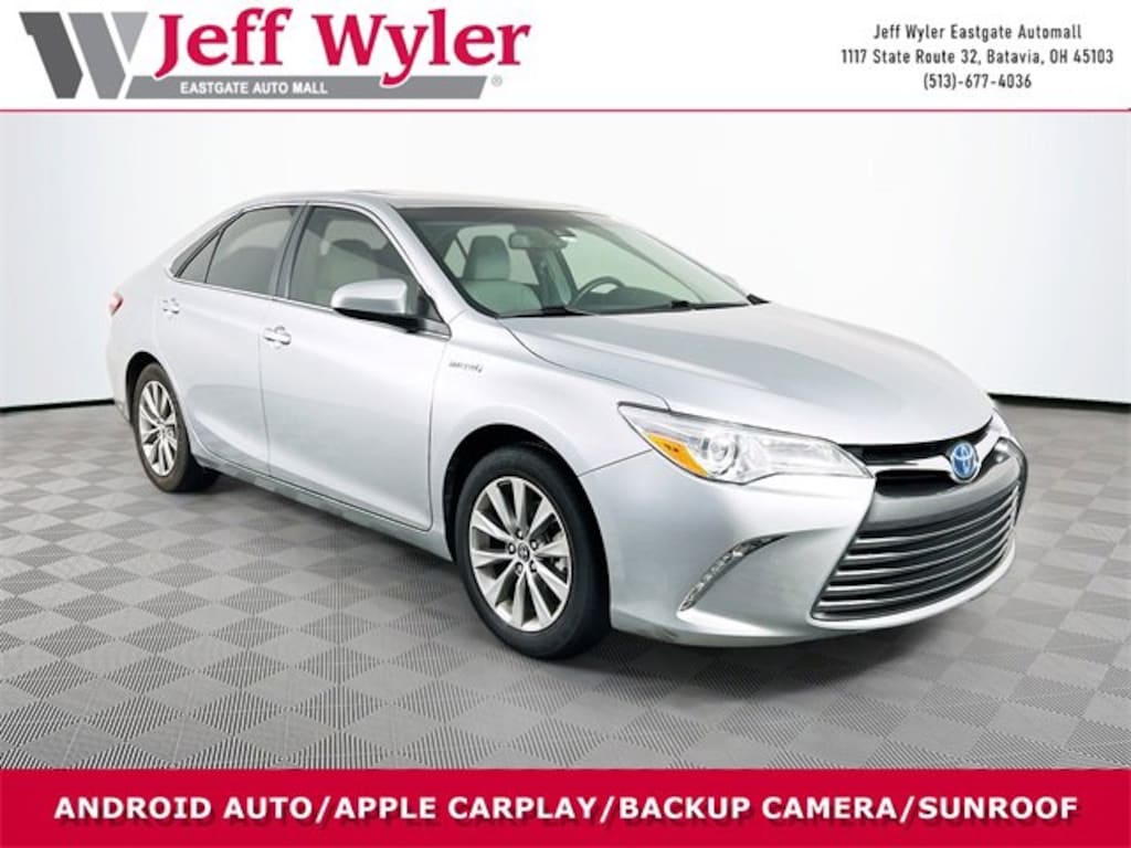 Jeff Wyler Eastgate Auto Mall is excited to offer this fantastic-looking 2017 Toyota Camry Hybrid LE in Silver. Well equipped with: ABS brakes, Electronic Stability Control, Front dual zone A/C, Heated door mirrors, Illuminated entry, Low tire pressure warning, Remote keyless entry, Traction control, 4-Wheel Disc Brakes, 6 Speakers, Air Conditioning, AM/FM radio, Automatic temperature control, Brake assist, Bumpers: body-color, CD player, Delay-off headlights, Driver door bin, Driver vanity mirror, Dual front impact airbags, Dual front side impact airbags, Exterior Parking Camera Rear, Fabric Seat Trim, Four wheel independent suspension, Front anti-roll bar, Front Bucket Seats, Front Center Armrest, Front reading lights, Fully automatic headlights, Knee airbag, Occupant sensing airbag, Outside temperature display, Overhead airbag, Overhead console, Panic alarm, Passenger door bin, Passenger vanity mirror, Power door mirrors, Power driver seat, Power steering, Power windows, Radio: Entune Audio, Rear anti-roll bar, Rear seat center armrest, Rear side impact airbag, Rear window defroster, Speed control, Speed-sensing steering, Split folding rear seat, Steering wheel mounted audio controls, Telescoping steering wheel, Tilt steering wheel, Trip computer, Variably intermittent wipers, and Wheels: 7.0J x 16 Steel. Clean CARFAX. Awards:* 2017 KBB.com 10 Best Sedans Under $25,000 * 2017 KBB.com 10 Best Used Cars Under $20,000 * 2017 KBB.com 10 Most Comfortable Cars Under $30,000 * 2017 KBB.com Best Resale Value Awards * 2017 KBB.com 10 Most Awarded Brands Ask about available certifications. Used vehicles 10 years of age or newer with less than 100,000 miles are eligible for the Wyler Assurance Program, but eligible vehicles must pass our reconditioning process and multi-point inspection. Provided the vehicle passes inspection, vehicles will be eligible for the 6 month/6,000 mile limited warranty. The 6 month/6,000 mile limited warranty is NOT available on AS-IS vehicles, wholesale vehicles, lease buyback/pass-thru vehicles or un-inspected vehicles. Note that this program can also apply to vehicles where the remaining factory coverage is less than 6 months or 6,000 miles. Please check the Federal Trade Commission (FTC) Buyers guide on the vehicle for full details as to whether or not warranty coverage may apply. Contact Dealer for additional details. The Wyler Assurance 6 month/6,000 Mile limited warranty ends 6 months from the date of the Retail Purchase Agreement (BUYERS ORDER) or when the vehicle's odometer registers 6,000 additional miles to the mileage listed on the BUYERS ORDER, whichever comes first. Your Deductible - The warranty holder on your contract pays the first $100 of each covered repair.