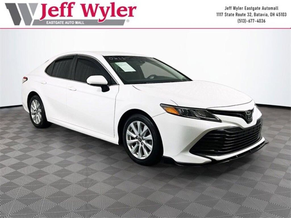 Jeff Wyler Eastgate Auto Mall is very proud to offer this good-looking 2018 Toyota Camry L in Super White. Well equipped with: 4-Wheel Disc Brakes, 6 Speakers, ABS brakes, Air Conditioning, Auto High-beam Headlights, Brake assist, Bumpers: body-color, Delay-off headlights, Driver door bin, Driver vanity mirror, Dual front impact airbags, Dual front side impact airbags, Electronic Stability Control, Exterior Parking Camera Rear, Four wheel independent suspension, Front anti-roll bar, Front Bucket Seats, Front Center Armrest, Front reading lights, Fully automatic headlights, Illuminated entry, Knee airbag, Low tire pressure warning, Occupant sensing airbag, Outside temperature display, Overhead airbag, Overhead console, Panic alarm, Passenger door bin, Passenger vanity mirror, Power door mirrors, Power steering, Power windows, Radio data system, Radio: Entune 3.0 Audio, Rear anti-roll bar, Rear reading lights, Rear side impact airbag, Rear window defroster, Remote keyless entry, Speed control, Speed-sensing steering, Steering wheel mounted audio controls, Tachometer, Telescoping steering wheel, Tilt steering wheel, Traction control, Trip computer, and Variably intermittent wipers. Clean CARFAX. Awards:* 2018 KBB.com Best Family Sedans * 2018 KBB.com 10 Best Sedans Under $25,000 * 2018 KBB.com 10 Most Awarded Cars * 2018 KBB.com 10 Most Awarded Brands * 2018 KBB.com Best Resale Value Awards Ask about available certifications. Used vehicles 10 years of age or newer with less than 100,000 miles are eligible for the Wyler Assurance Program, but eligible vehicles must pass our reconditioning process and multi-point inspection. Provided the vehicle passes inspection, vehicles will be eligible for the 6 month/6,000 mile limited warranty. The 6 month/6,000 mile limited warranty is NOT available on AS-IS vehicles, wholesale vehicles, lease buyback/pass-thru vehicles or un-inspected vehicles. Note that this program can also apply to vehicles where the remaining factory coverage is less than 6 months or 6,000 miles. Please check the Federal Trade Commission (FTC) Buyers guide on the vehicle for full details as to whether or not warranty coverage may apply. Contact Dealer for additional details. The Wyler Assurance 6 month/6,000 Mile limited warranty ends 6 months from the date of the Retail Purchase Agreement (BUYERS ORDER) or when the vehicle's odometer registers 6,000 additional miles to the mileage listed on the BUYERS ORDER, whichever comes first. Your Deductible - The warranty holder on your contract pays the first $100 of each covered repair.