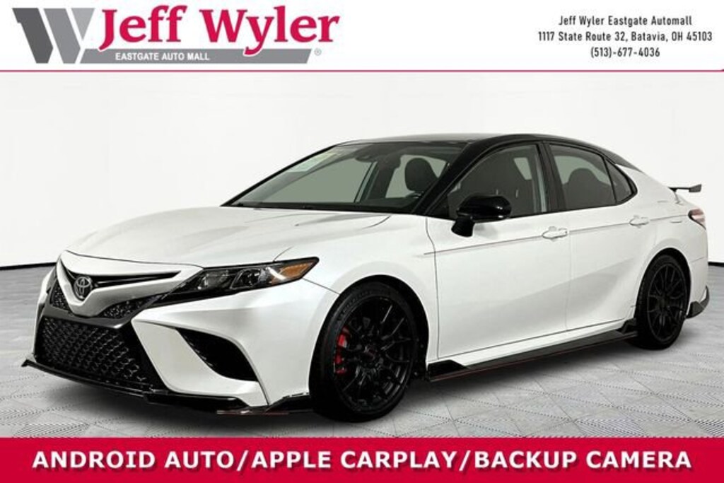 Jeff Wyler Eastgate Auto Mall is delighted to offer this outstanding-looking 2020 Toyota Camry TRD V6 in White. Well equipped with: 4-Wheel Disc Brakes, 6 Speakers, ABS brakes, Air Conditioning, Alloy wheels, AM/FM radio: SiriusXM, Apple CarPlay/Android Auto, Auto High-beam Headlights, Auto-dimming Rear-View mirror, Automatic temperature control, Brake assist, Bumpers: body-color, Compass, Delay-off headlights, Driver door bin, Driver vanity mirror, Dual front impact airbags, Dual front side impact airbags, Electronic Stability Control, Emergency communication system: Safety Connect with 1-year trial, Exterior Parking Camera Rear, Fabric Seat Trim w/SofTex, Four wheel independent suspension, Front anti-roll bar, Front Bucket Seats, Front Center Armrest, Front dual zone A/C, Front reading lights, Front Sport Bucket Seats, Fully automatic headlights, Heated door mirrors, Illuminated entry, Knee airbag, Leather Shift Knob, Low tire pressure warning, Occupant sensing airbag, Outside temperature display, Overhead airbag, Overhead console, Panic alarm, Passenger door bin, Passenger vanity mirror, Power door mirrors, Power driver seat, Power steering, Power windows, Radio data system, Radio: AM/FM Audio System, Rear anti-roll bar, Rear reading lights, Rear seat center armrest, Rear side impact airbag, Rear window defroster, Remote keyless entry, Security system, Speed control, Speed-sensing steering, Split folding rear seat, Spoiler, Sport steering wheel, Steering wheel mounted audio controls, Tachometer, Telescoping steering wheel, Tilt steering wheel, Traction control, TRD Bumper, TRD LED Low Headlamp, TRD Luggage Door, TRD Rear Spoiler, Trip computer, Turn signal indicator mirrors, Variably intermittent wipers, and Wheels: 8.5J x 19 TRD Matte Black Alloy. Clean CARFAX. Ask about available certifications. Used vehicles 10 years of age or newer with less than 100,000 miles are eligible for the Wyler Assurance Program, but eligible vehicles must pass our reconditioning process and multi-point inspection. Provided the vehicle passes inspection, vehicles will be eligible for the 6 month/6,000 mile limited warranty. The 6 month/6,000 mile limited warranty is NOT available on AS-IS vehicles, wholesale vehicles, lease buyback/pass-thru vehicles or un-inspected vehicles. Note that this program can also apply to vehicles where the remaining factory coverage is less than 6 months or 6,000 miles. Please check the Federal Trade Commission (FTC) Buyers guide on the vehicle for full details as to whether or not warranty coverage may apply. Contact Dealer for additional details. The Wyler Assurance 6 month/6,000 Mile limited warranty ends 6 months from the date of the Retail Purchase Agreement (BUYERS ORDER) or when the vehicle's odometer registers 6,000 additional miles to the mileage listed on the BUYERS ORDER, whichever comes first. Your Deductible - The warranty holder on your contract pays the first $100 of each covered repair.