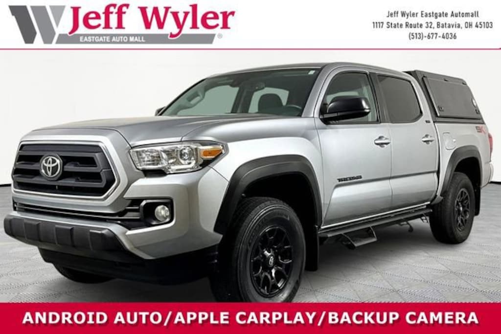 Jeff Wyler Eastgate Auto Mall is pleased to offer this stunning-looking 2023 Toyota Tacoma SR5 in Silver. Well equipped with: ABS brakes, Air Conditioning, AM/FM radio: SiriusXM, Anti-whiplash front head restraints, Apple CarPlay/Android Auto, Auto High-beam Headlights, Automatic temperature control, Brake assist, Bumpers: body-color, Driver door bin, Dual front impact airbags, Dual front side impact airbags, Electronic Stability Control, Emergency communication system: Safety Connect (1-year trial), Front anti-roll bar, Front Bucket Seats, Front Center Armrest, Front dual zone A/C, Front reading lights, Front wheel independent suspension, Heated door mirrors, Illuminated entry, Knee airbag, Low tire pressure warning, Occupant sensing airbag, Outside temperature display, Overhead airbag, Overhead console, Passenger door bin, Power door mirrors, Power steering, Power windows, Rear step bumper, Speed control, Speed-sensing steering, Split folding rear seat, Steering wheel mounted audio controls, Tachometer, Telescoping steering wheel, Tilt steering wheel, Traction control, and Variably intermittent wipers. CARFAX One-Owner. Clean CARFAX. Ask about available certifications. Used vehicles 10 years of age or newer with less than 100,000 miles are eligible for the Wyler Assurance Program, but eligible vehicles must pass our reconditioning process and multi-point inspection. Provided the vehicle passes inspection, vehicles will be eligible for the 6 month/6,000 mile limited warranty. The 6 month/6,000 mile limited warranty is NOT available on AS-IS vehicles, wholesale vehicles, lease buyback/pass-thru vehicles or un-inspected vehicles. Note that this program can also apply to vehicles where the remaining factory coverage is less than 6 months or 6,000 miles. Please check the Federal Trade Commission (FTC) Buyers guide on the vehicle for full details as to whether or not warranty coverage may apply. Contact Dealer for additional details. The Wyler Assurance 6 month/6,000 Mile limited warranty ends 6 months from the date of the Retail Purchase Agreement (BUYERS ORDER) or when the vehicle's odometer registers 6,000 additional miles to the mileage listed on the BUYERS ORDER, whichever comes first. Your Deductible - The warranty holder on your contract pays the first $100 of each covered repair.